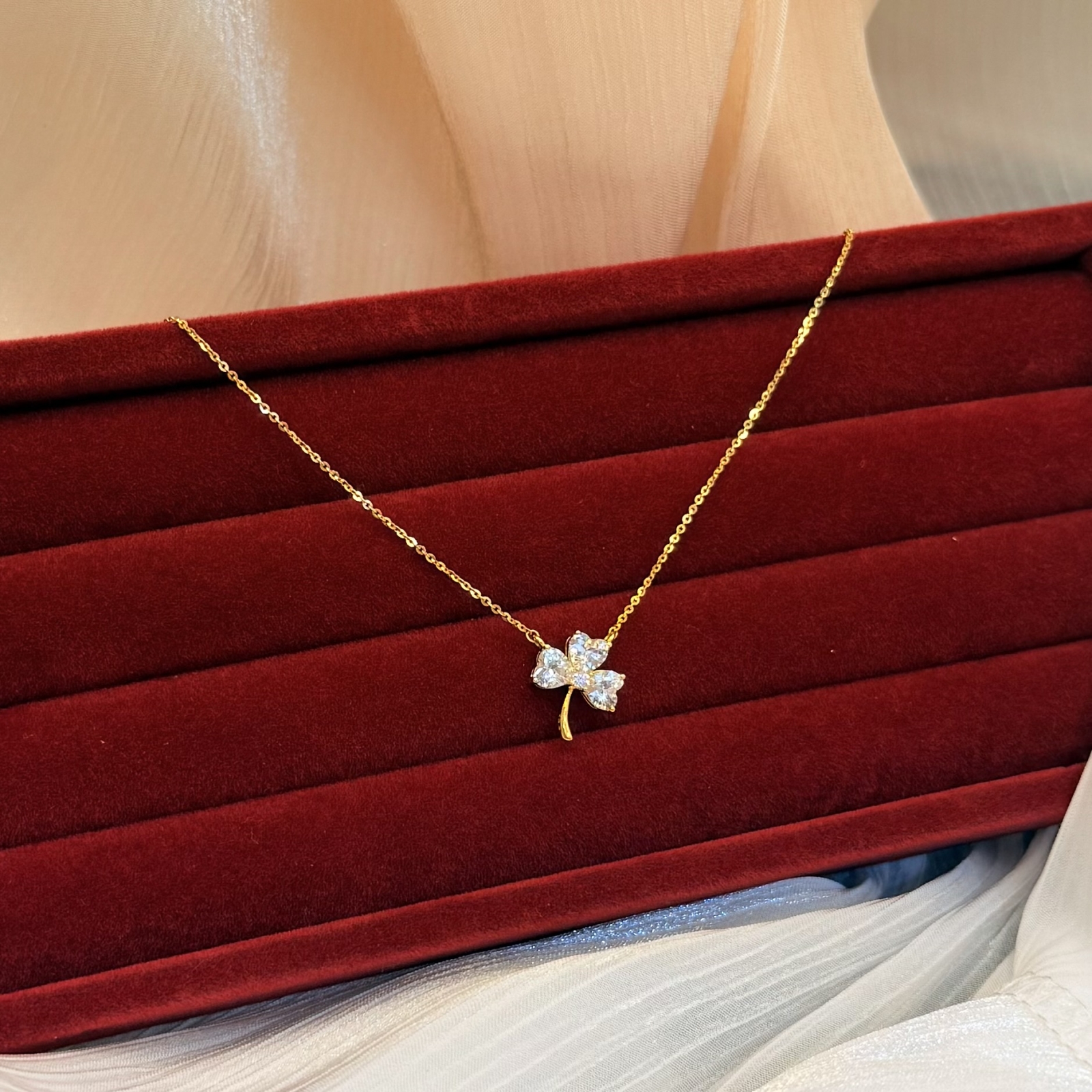 Dây chuyền liền mặt cỏ 3 lá đính tấm